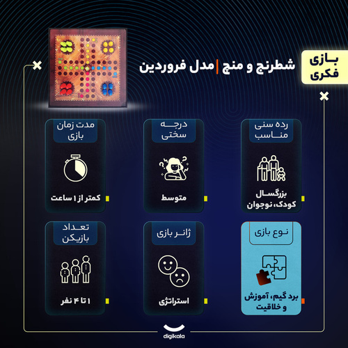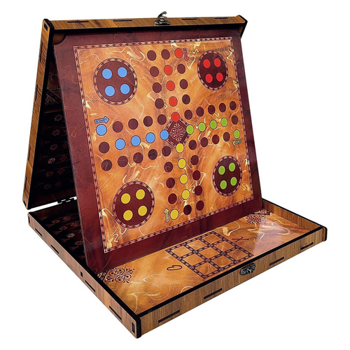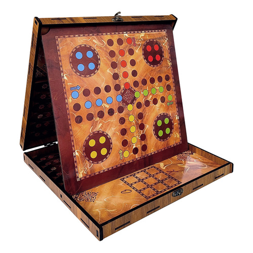 شامل بازی های : شطرنج ، چکرز ، منچ ، مارپله ، دوز ، شوتبال ، کش بال همراه تمام مهره ها و بازی x و o جنس این محصول ام دی اف است و مهره ها منچ و مارپله از جنس پلاستیک است و مهره های دوز و شطرنج و شوتبال از ام دی اف لیزر شده است.